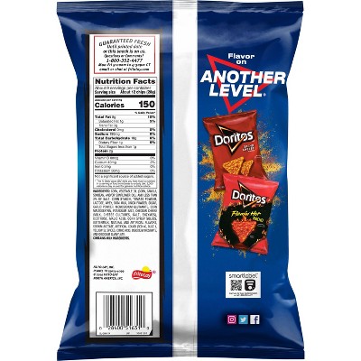 Doritos Cool Ranch flavored tortilla chips are packed with big, bold flavor. Experience a burst of tanginess with hints of onion, garlic, tomato and spice merging together in a bold creamy, cool ranch blend. Doritos Tortilla Chips are the universal language of awesome, grab a bag and stock up on bold taste.