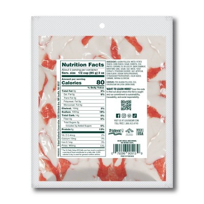 Louis Kemp crab delights® flake style are a delicious, crab-flavored seafood made with sustainable wild Alaska Pollock. With 6g of protein and 0 grams of fat, this versatile seafood is perfect for mixing up a homemade seafood salad, crab dip, chowders or any other of your favorite crab or seafood based recipes. With a whole pound of pre-cooked and ready to eat crab delights® to enjoy, you’ll be able to indulge in the taste you love at an affordable price any time you please. Each serving is gluten free, flake-style, and only 8 calories, making them a great ingredient on top of a satisfying snack.